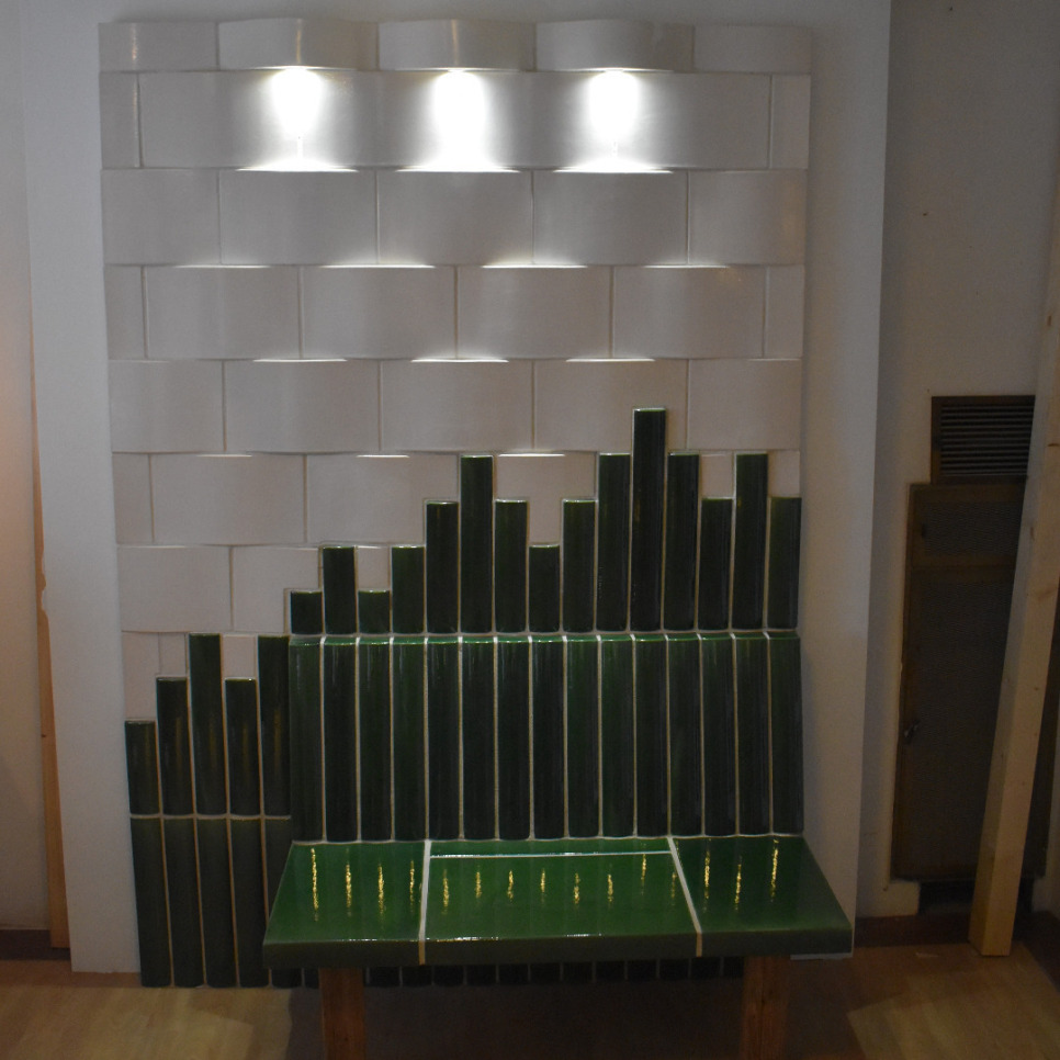 Die elektrisch beheizten Wandpanele, Kachelöfen und Sitzmöbel funktionieren als geschlossenes System. Sämtliche benötigte Isolierung verbirgt sich im Inneren der Hülle aus Keramik. Es entfällt neben dem Einlagern und Auffüllen von Brennstoff ein Anschluss an den Schornstein. Kachelofenwärme ohne Aufwand.