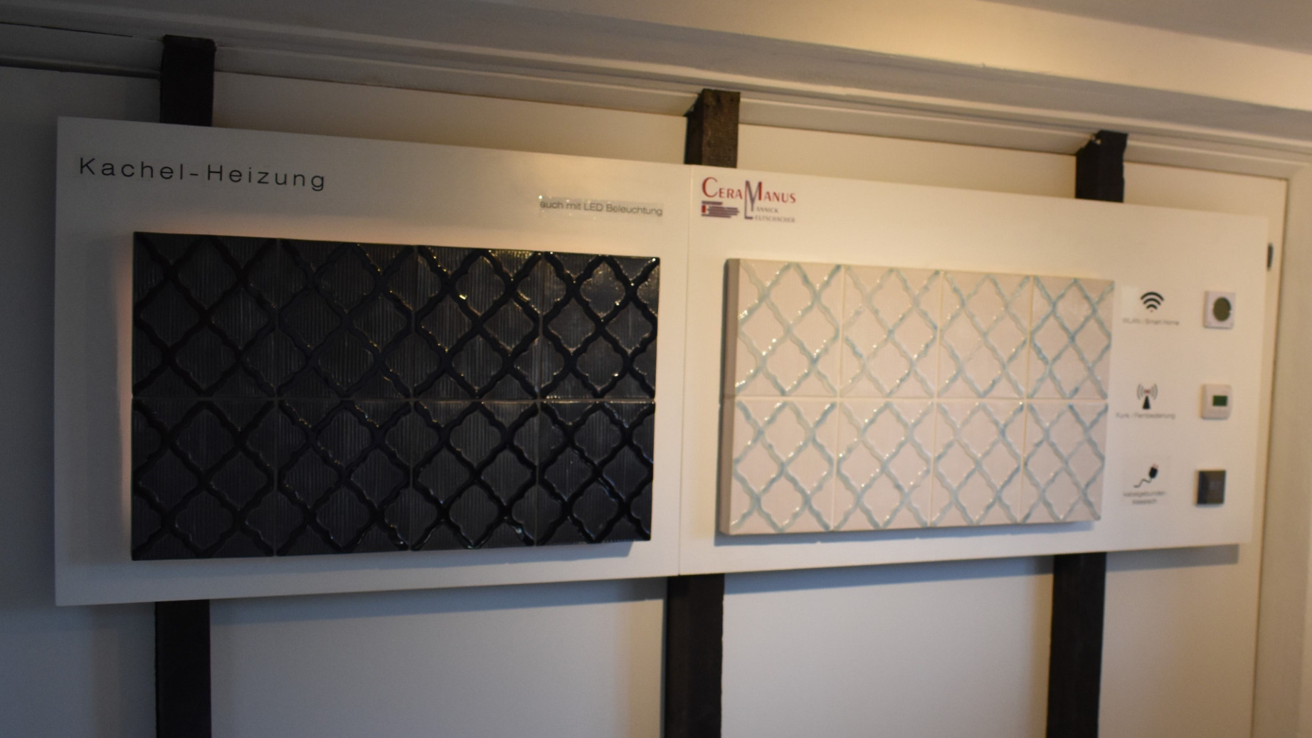 Durch diese Erfahrungen und Möglichkeiten sind wir stolz Ihnen eine neue Variante klassischer und moderner Architektur-Keramik anbieten zu können: Die elektrisch beheizte Stil-Keramik (als Keramik-Heizung) mit der Möglichkeit über das Smartphone gesteuert zu werden.